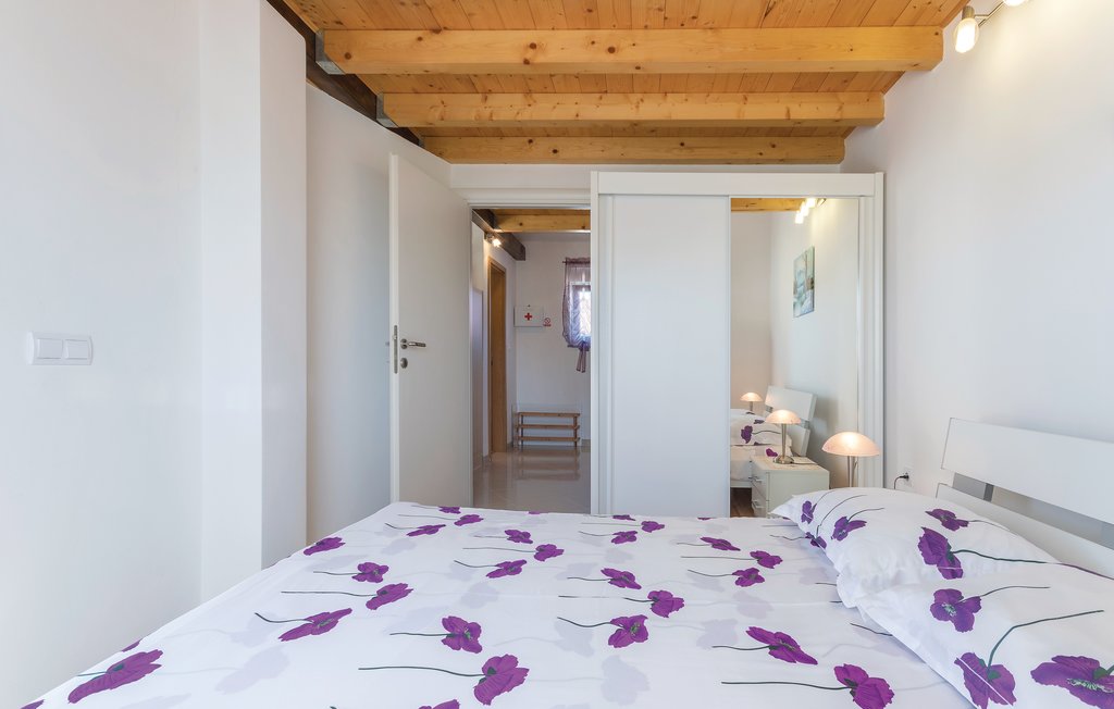 Apartment 2 (A4) azdobljeBroj osobaCijenaMinimalni boravak08.06. – 22.06.455 €7 noći22.06. – 06.07.460 €7 noći06.07. – 17.08.465 €7 noći17.08. – 31.08. 31.08. – 14.09.14.09. – 28.09.4 4460 € 55 €507 noći 7 noći7 noći Nalazi se na prvom katu na lijevoj strani obiteljske kuće.Površina apartmana : 60 metara kvadratnihBroj osoba : (4)Sadržaj :***2 odvojene spavaće sobeLCD/LED tv-SATkupaonicakuhinjabalkonklima uz nadoplatu 8 eu/danparkingterasawi-fi internet – uz nadoplatu 1 eu/dan